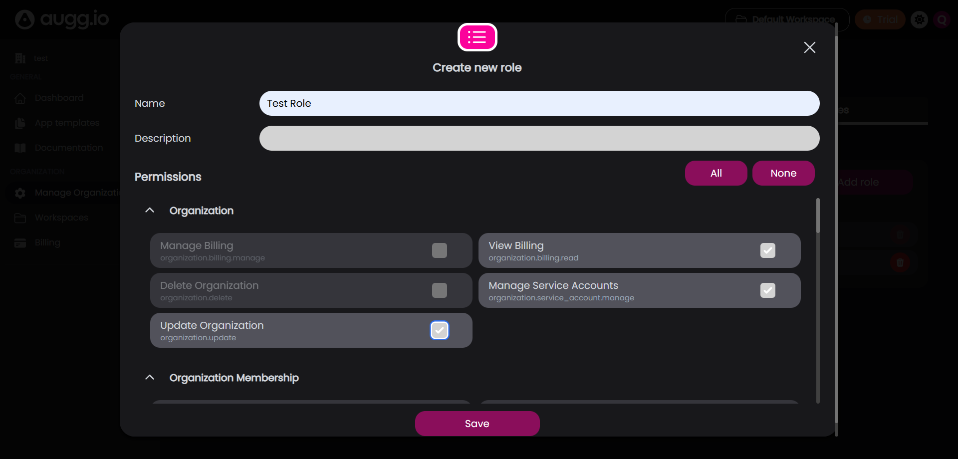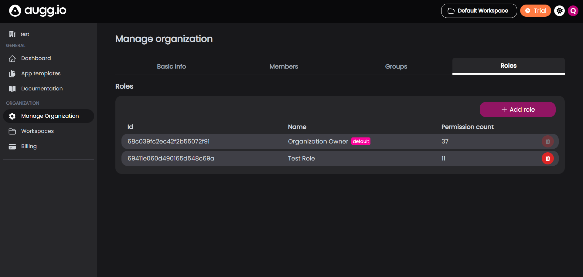 - Organization Role: Defines organization level permissions (mostly for managing the organization itself).