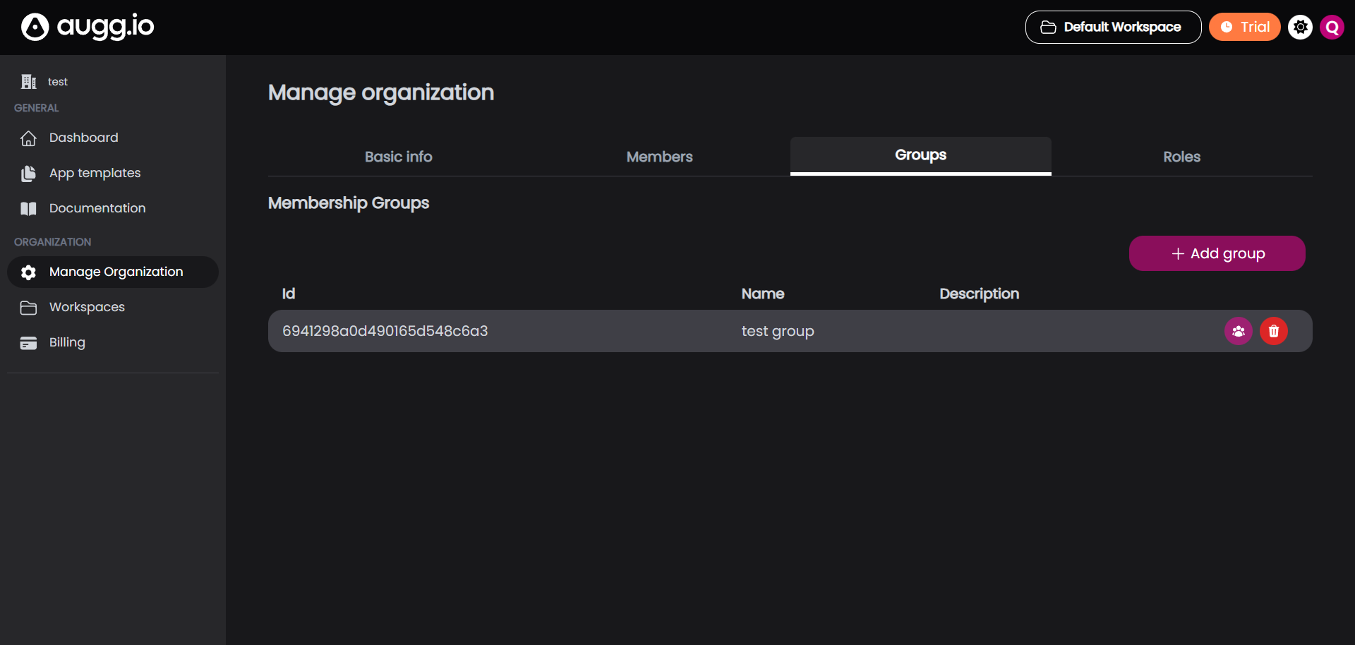 - Adding Members to Groups: Click the icon on the group to add individual accounts from your Organization’s member list to the newly created group.