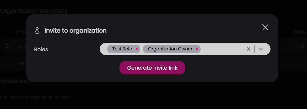- Select Roles: You can select one or multiple roles from the list. The invited user will automatically get these roles assigned after accepting the invite.