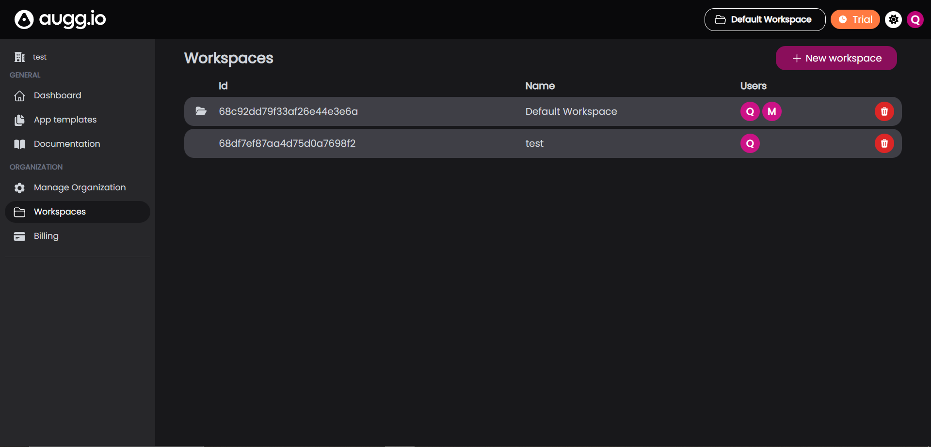 Crucially, all Applications, Locations, and Experiences are organized under Workspaces. Therefore, content visibility and project-specific permissions are controlled at the Workspace level. The Workspace Management screen is the central hub for managing all content-related actions.