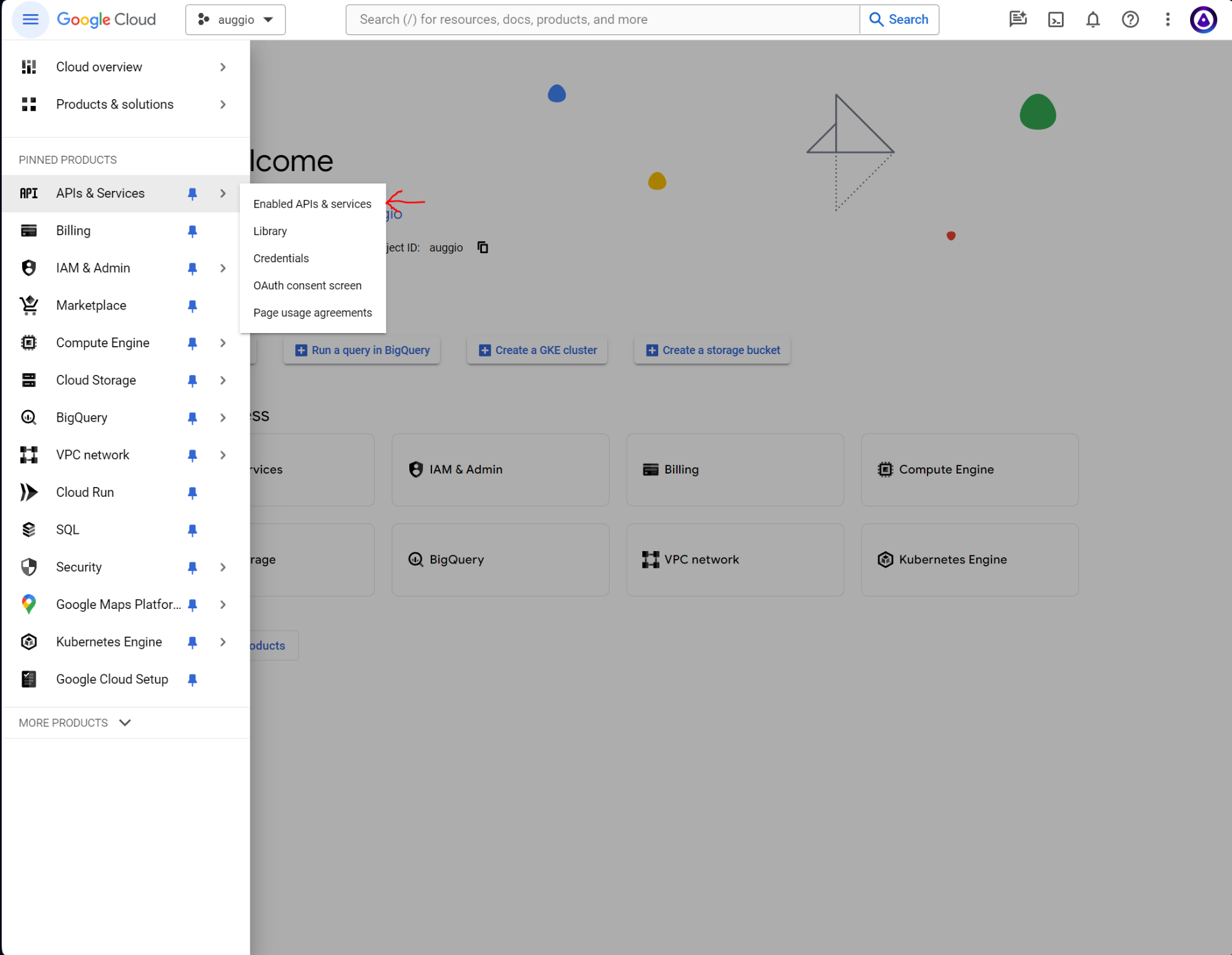 - Click Enabled API & Services