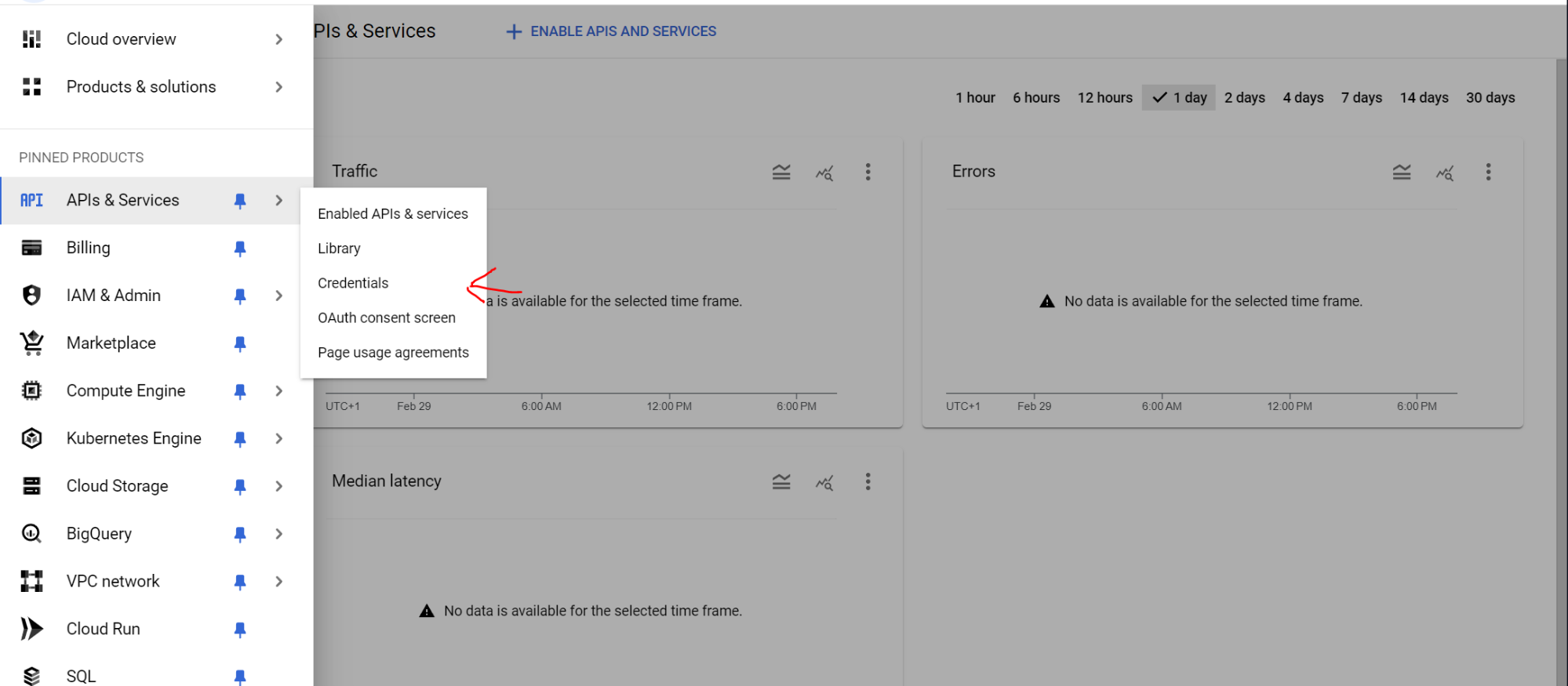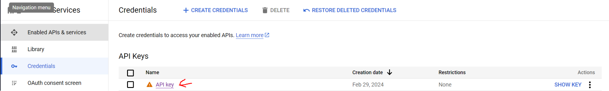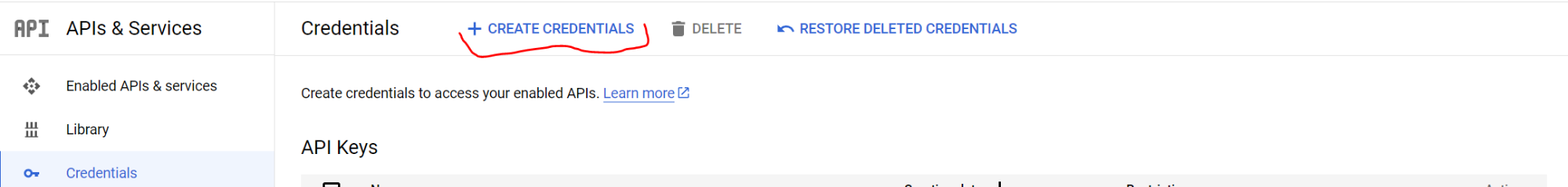In the right hand menu click on Credentials