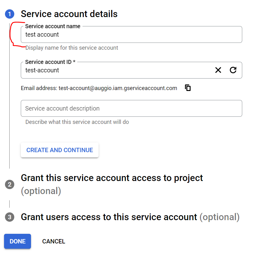 Fill in the service account name. You don’t have to touch anything else.
